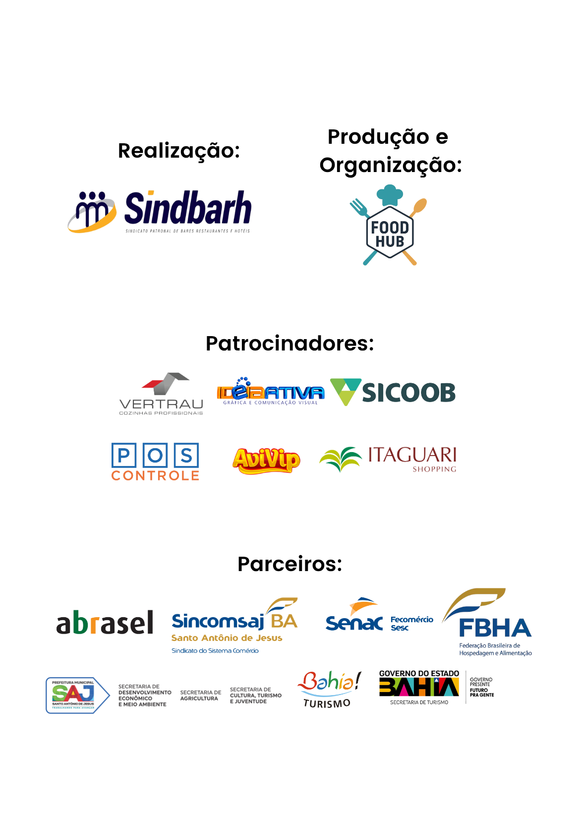 O Sabores SAJ é patrocinado pela Secretaria de Turismo do Governo do Estado da Bahia, Bahia Turismo, Eisenbahn, Coca-Cola, Ideia Ativa – Gráfica e comunicação visual, Avigran e Itaguari Shopping.